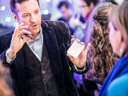 Que ce soit pour un close-up durant le cocktail ou le repas, un spectacle de mentalisme sur scène, ou encore un atelier illusion & persuasion en groupe, il saura éblouir vos invités.